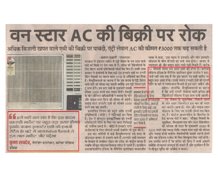 Carrier Midea India (CMI) takes pride in delivering innovative and industry-leading products. It is honored to have received recognition and appreciation from various media outlets, and is delighted to share these accomplishments with the customers.